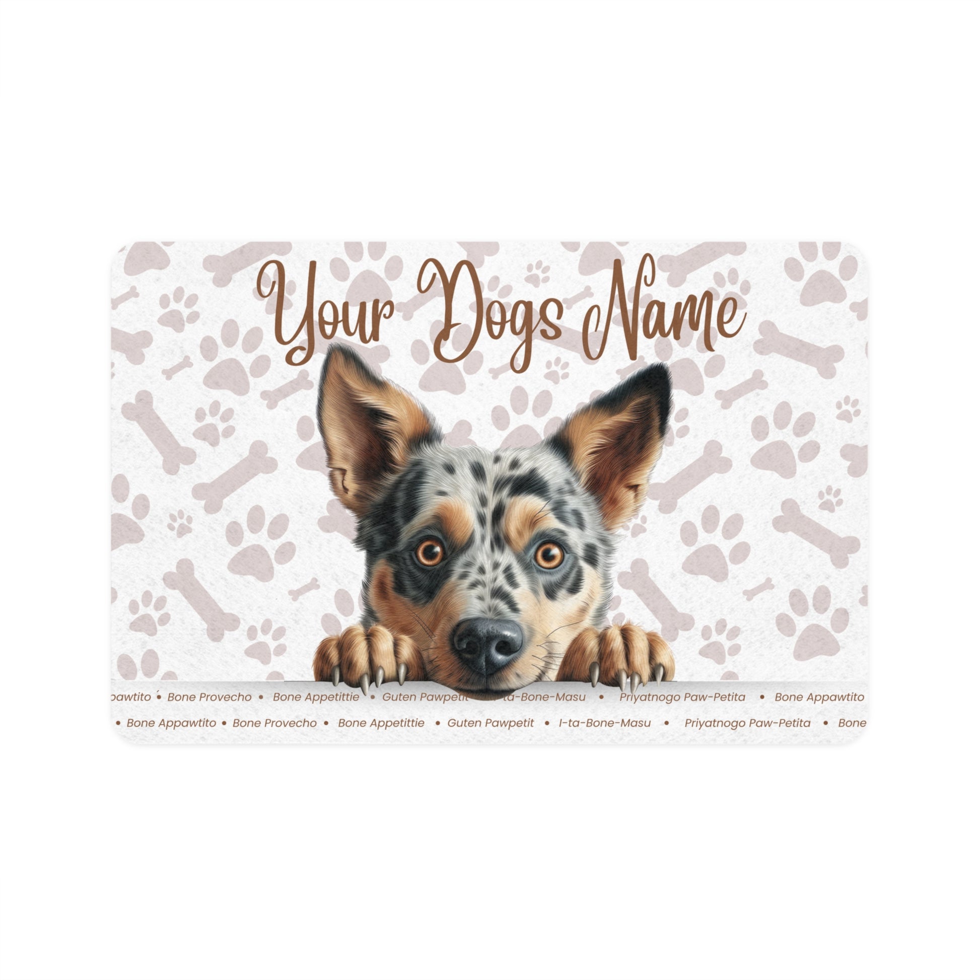 Australian Cattle Dog Personalized Dog Food Mat, Custom Pet Feeding Area Rug, Dog Lover Gift, Puppy Accessories, Pet Decor