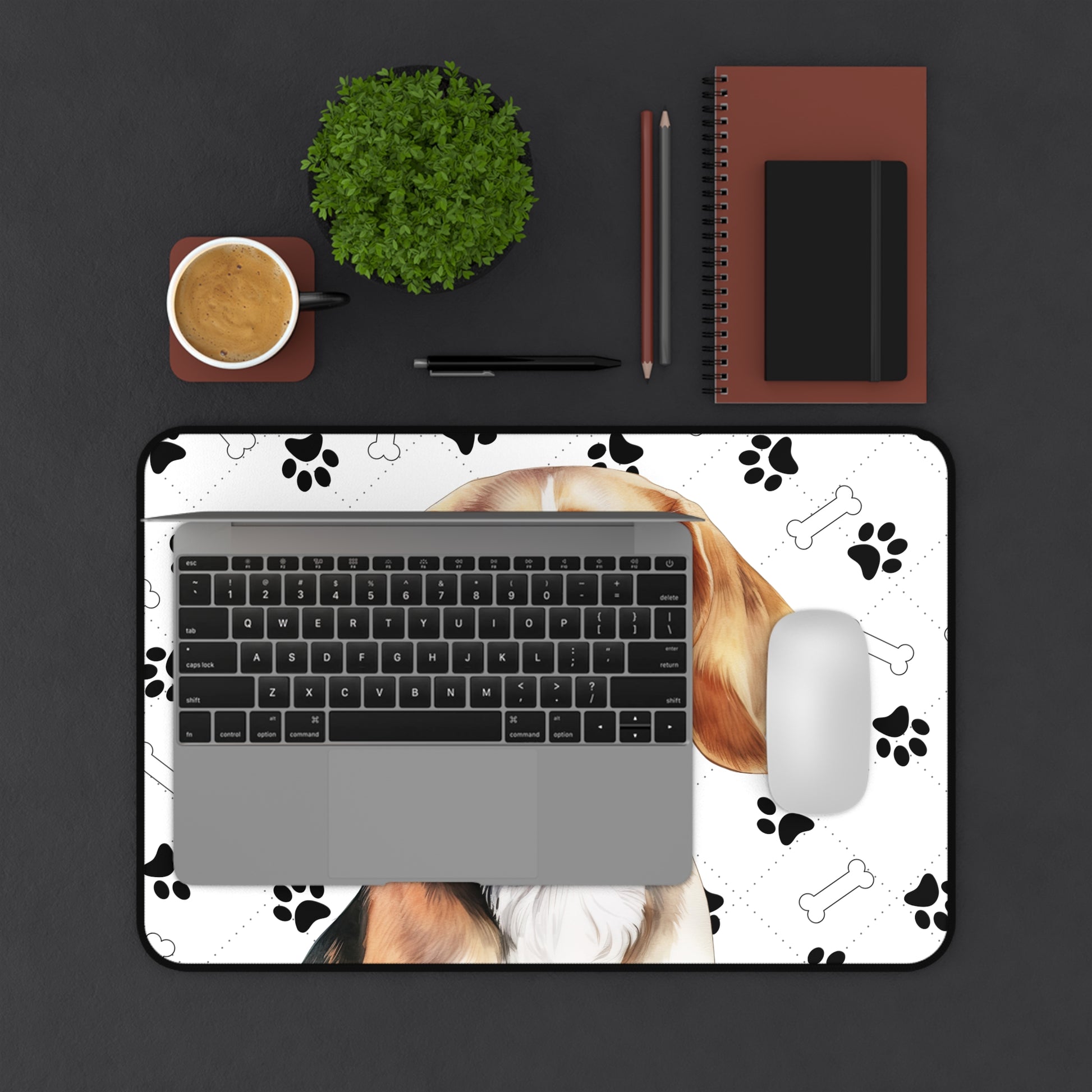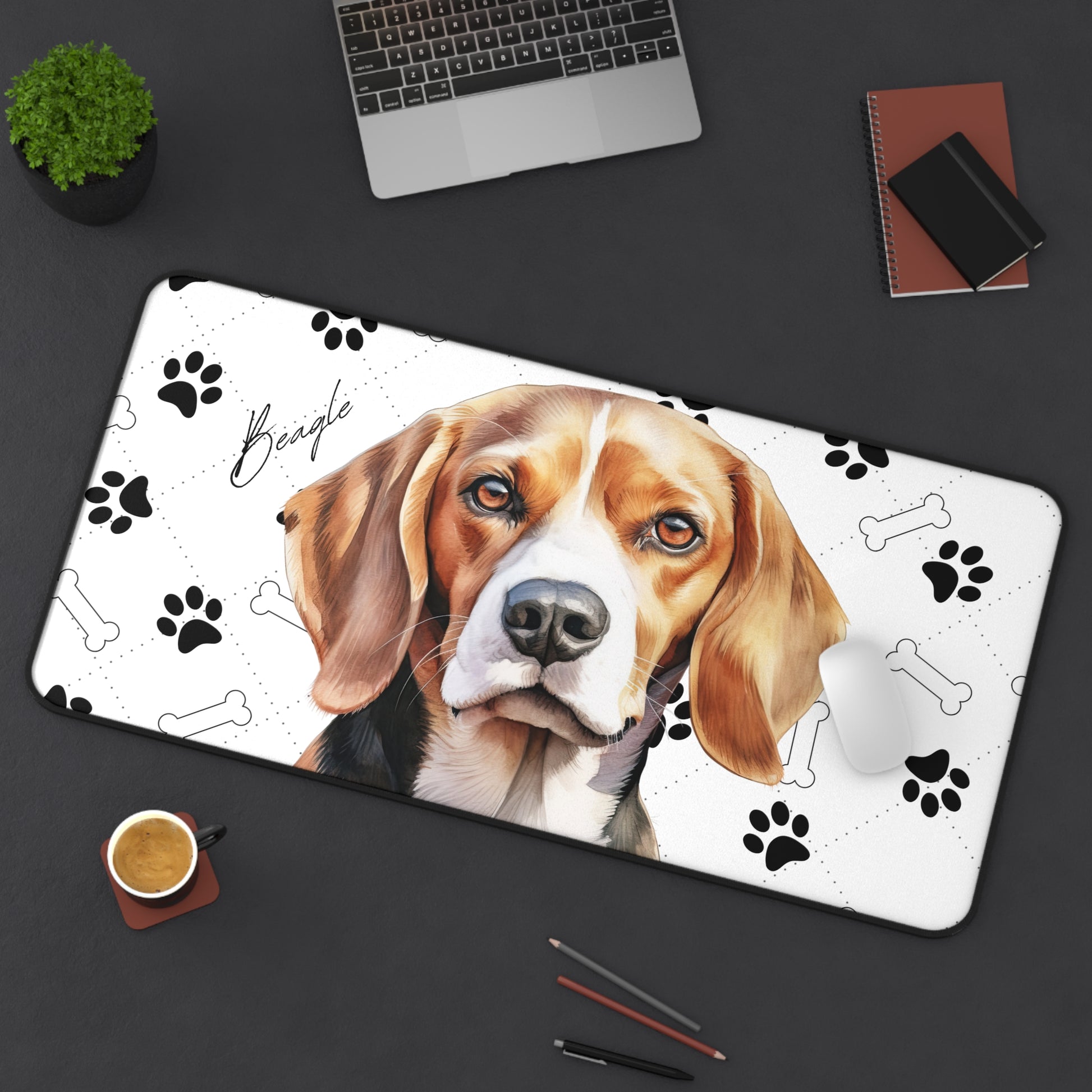 Brighten up your workspace with the playful spirit of the Beagle Desk Mat, a perfect fusion of practicality and playful design for enthusiasts of this adventurous and friendly breed. Known for their keen sense of smell, intelligence, and unmistakable howl, Beagles are celebrated on this desk mat with an exquisitely detailed illustration, set against a lighthearted background of paw prints and bones. This design not only pays homage to the breed's charming personality but also adds a touch of joy and whimsy to your desk.
