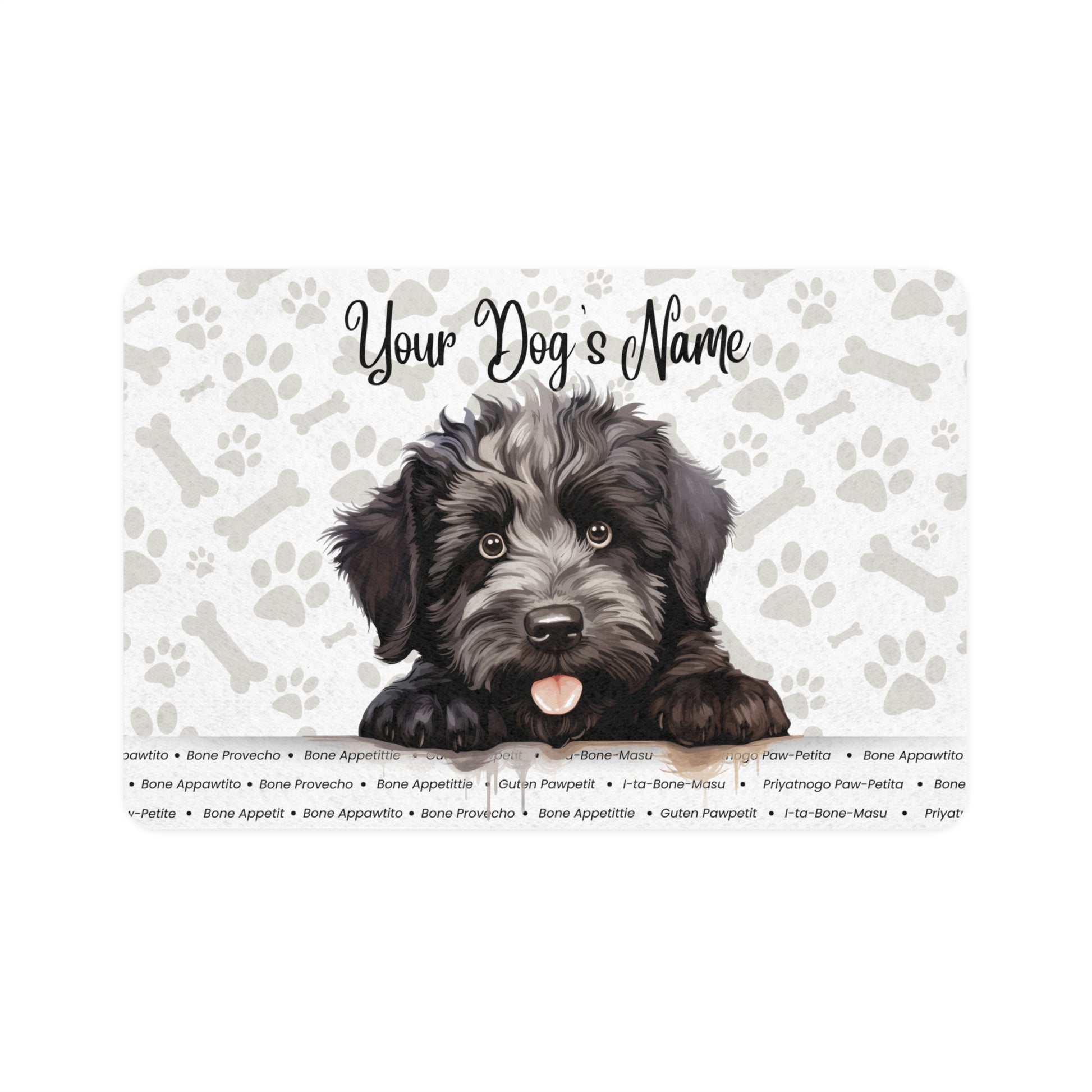 Bouvier des Flandres Personalized Pet Food Mat, Customizable Dog Feeding Mat, Cute Puppy Design, Pet Accessory, Home Décor for Pet Lovers