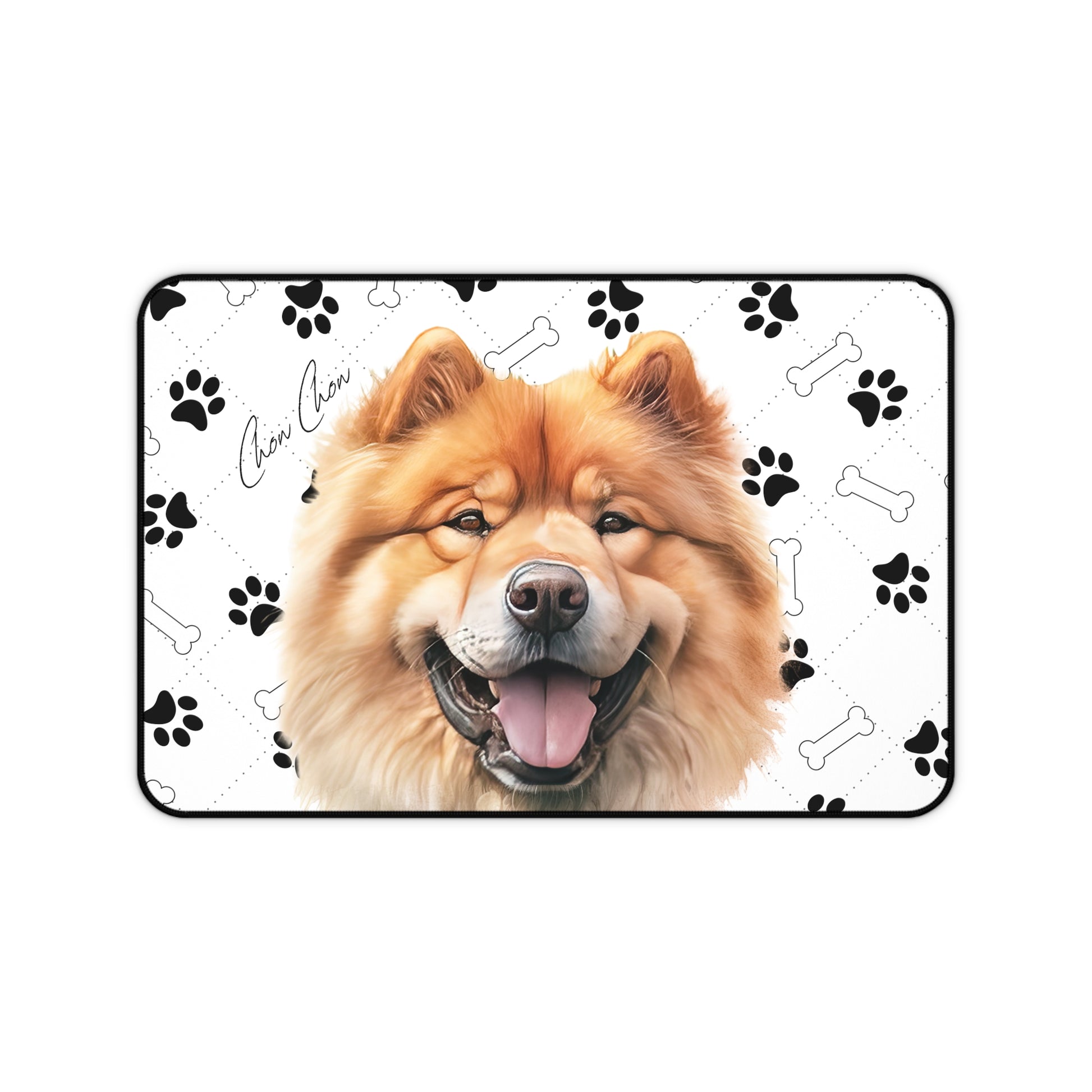 Introducing the Chow Chow Desk Mat, an exquisite and regal addition to your workspace that celebrates the distinctive beauty and dignified nature of the Chow Chow breed. Known for their unique blue-black tongue, lion-like mane, and noble stance, the Chow Chow is magnificently featured on this desk mat, set against a captivating backdrop of playful paw prints and bones. This design not only honors the breed's ancient heritage and aloof elegance but also adds a touch of majestic charm to your desk.