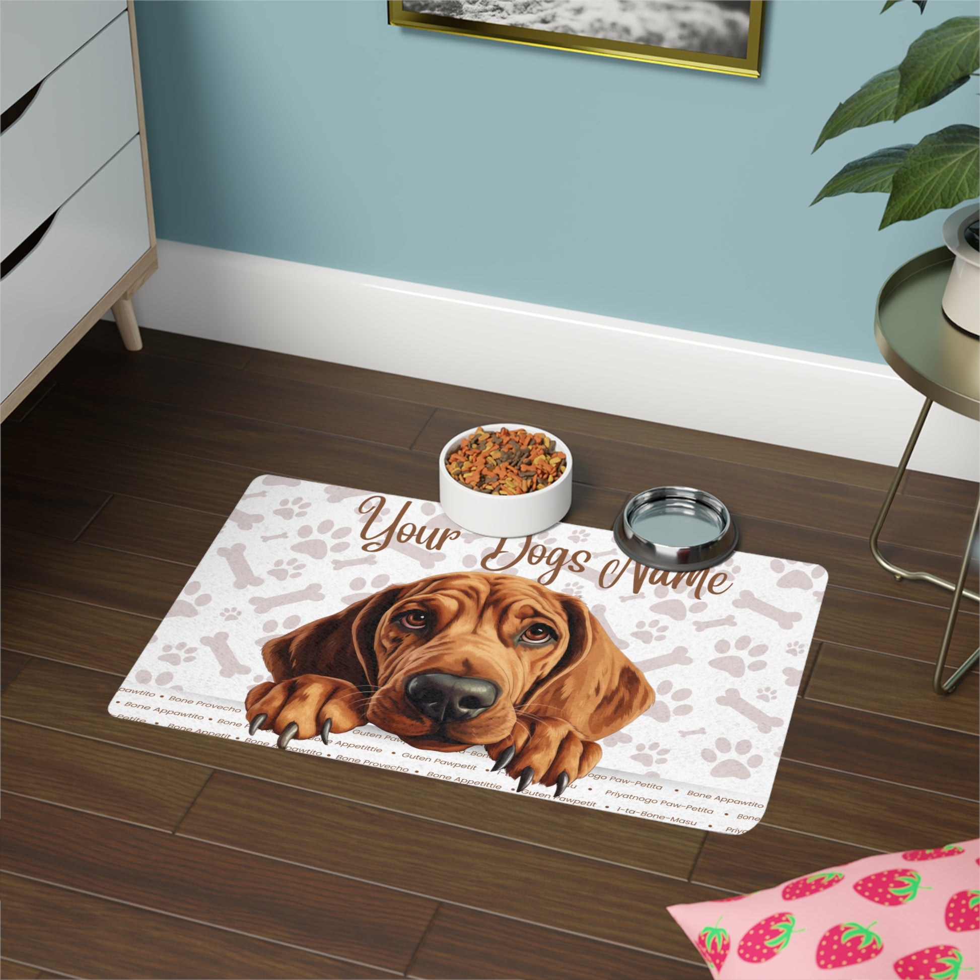 Redbone Coonhound Personalized Pet Food Mat, Custom Dog Food Mat, Dog Feeding Mat, Cute Pet Mat, Dog Lovers Gift