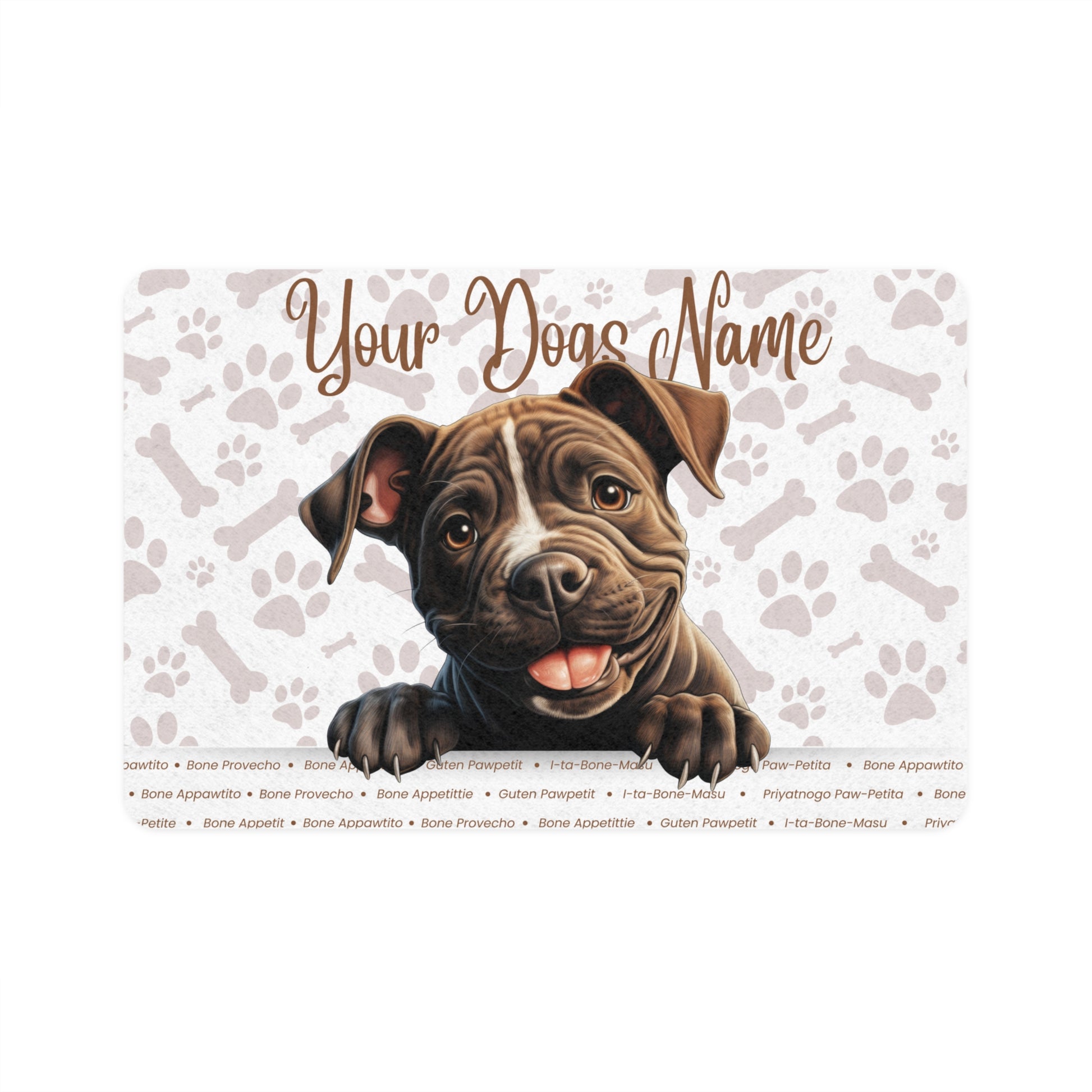 Staffordshire Bull Terrier Personalized Pet Food Mat, Custom Dog Food Mat, Dog Feeding Mat, Cute Pet Mat, Dog Lovers Gift