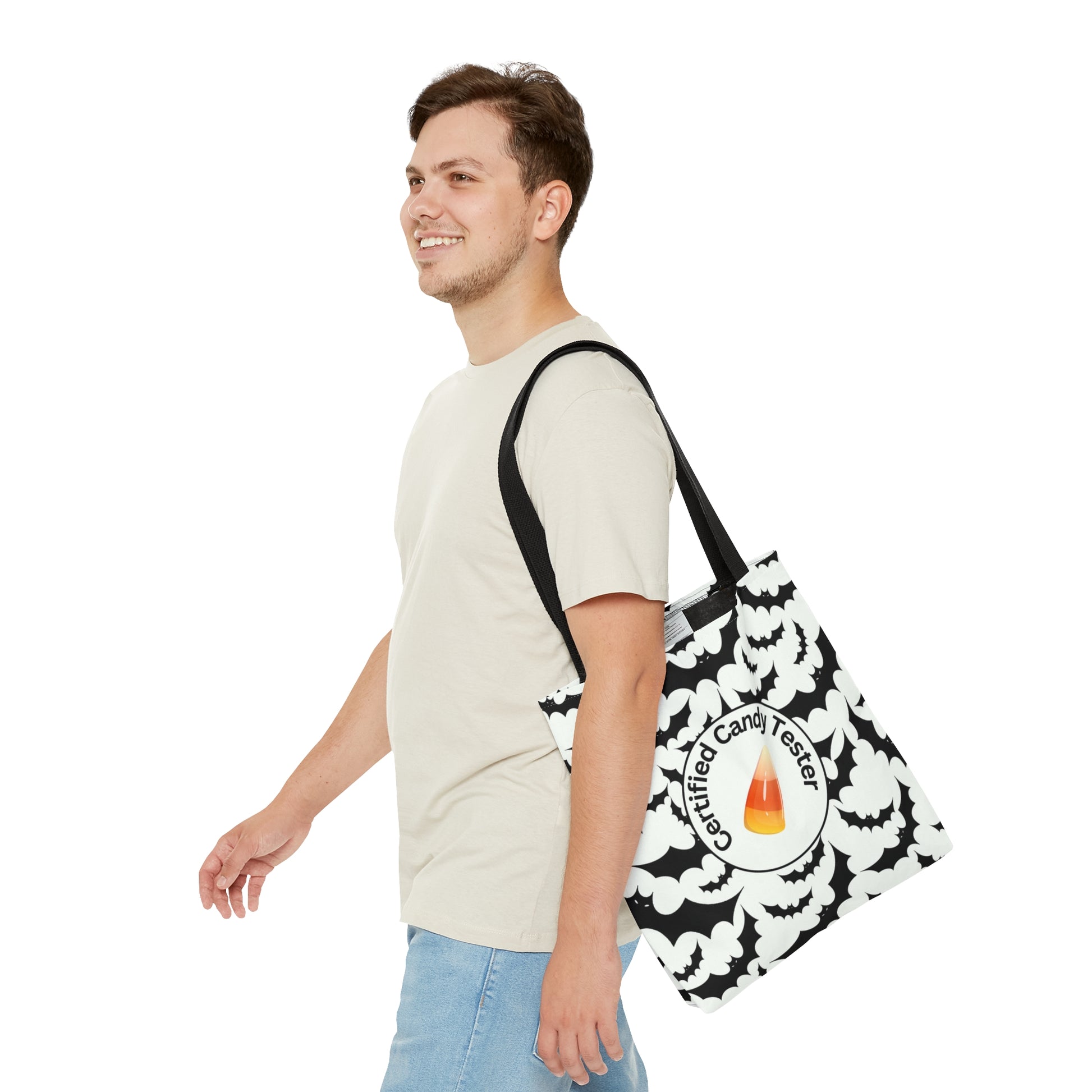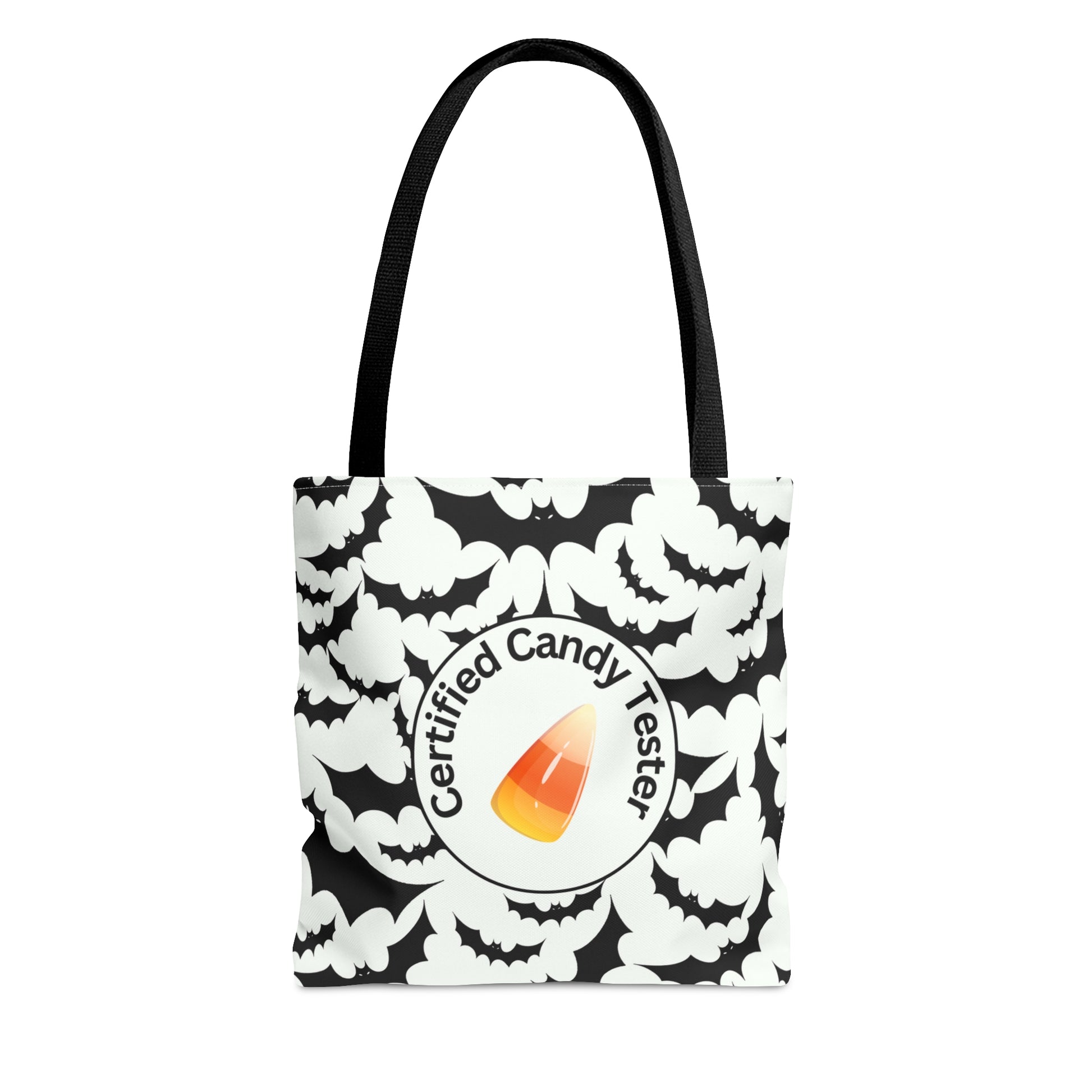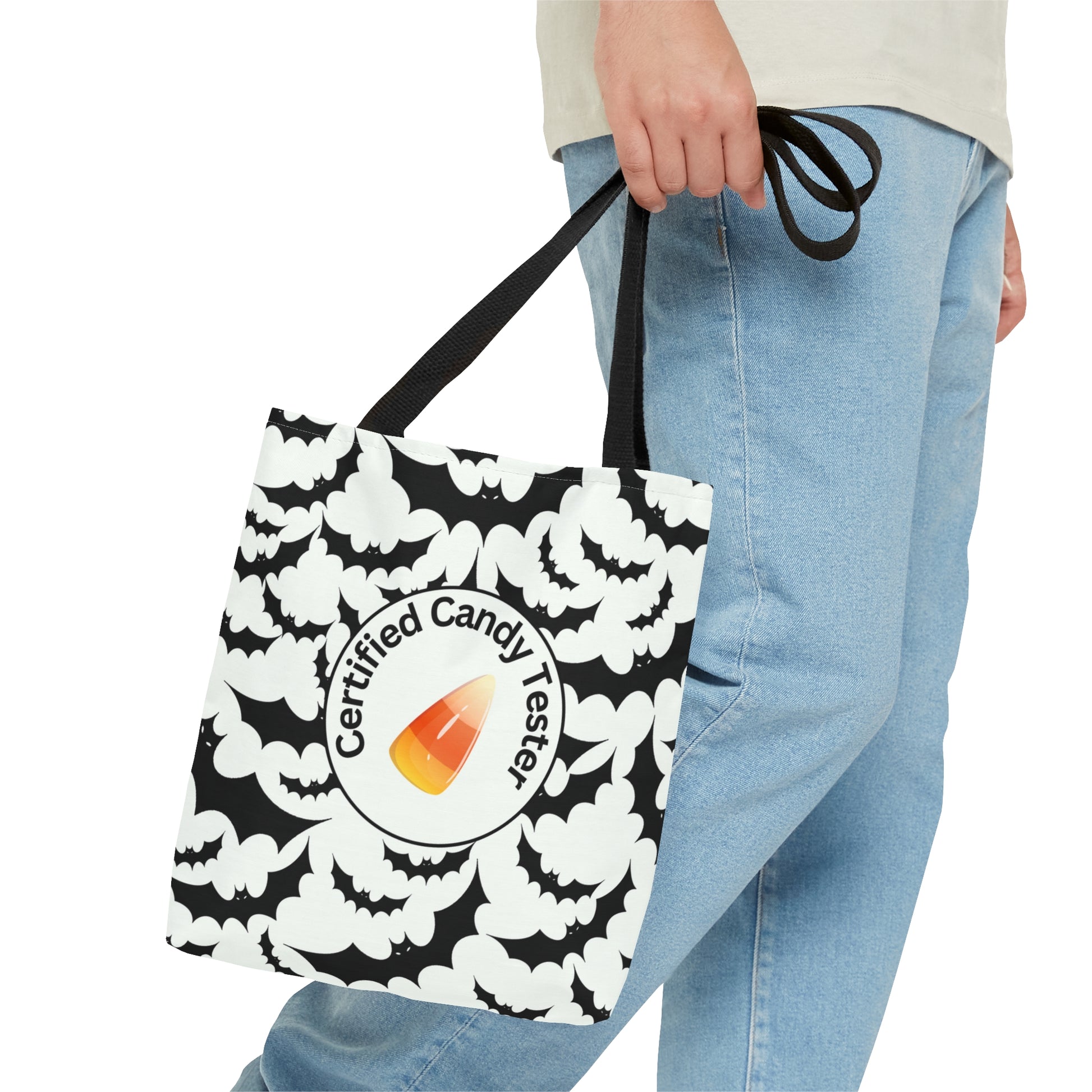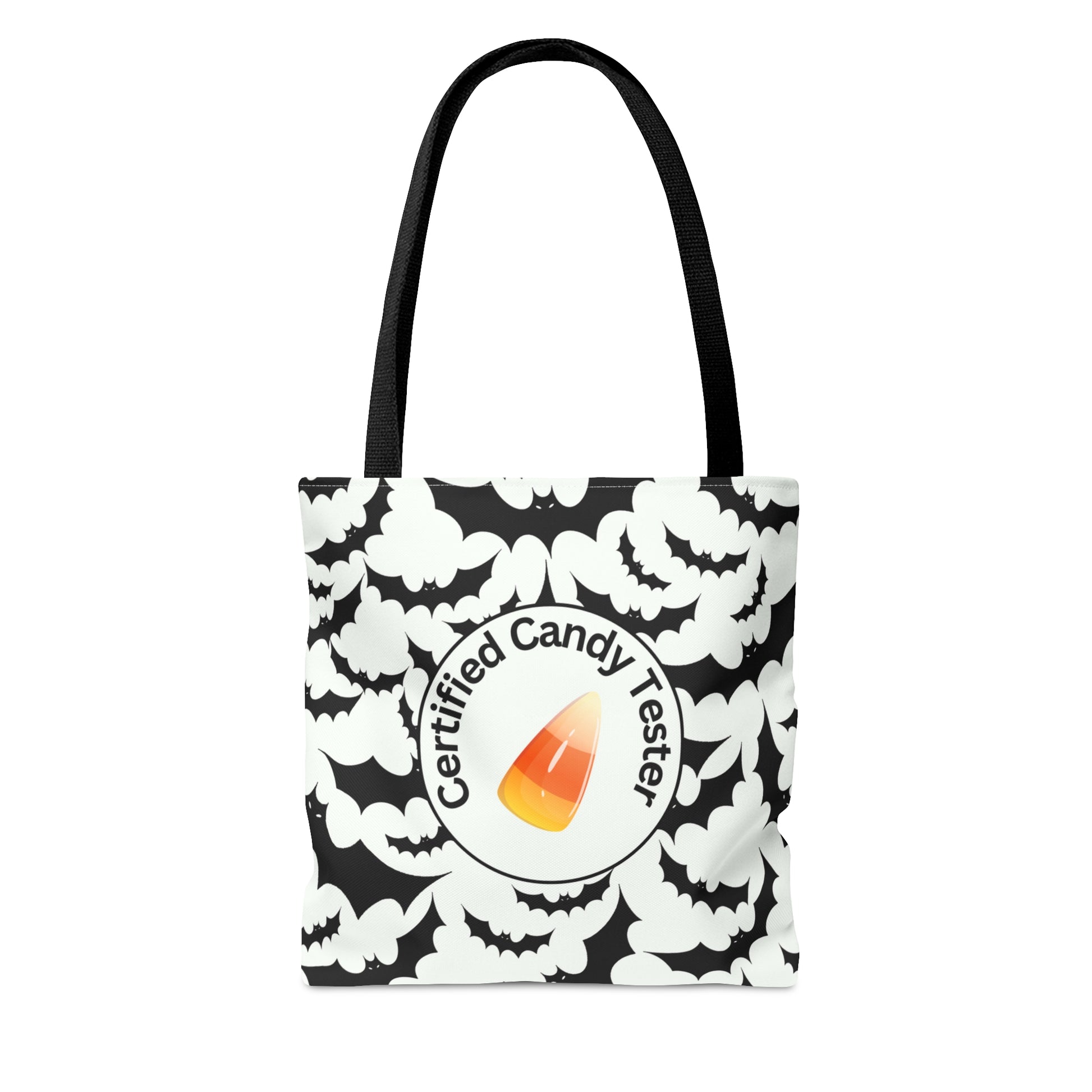Introducing our "Certified Candy Tester" Halloween Candy Bag – the ultimate accessory for little bat enthusiasts and candy connoisseurs! This candy bag features a captivating bat-themed design and the whimsical title "Certified Candy Tester," adding a playful twist to your Halloween night.